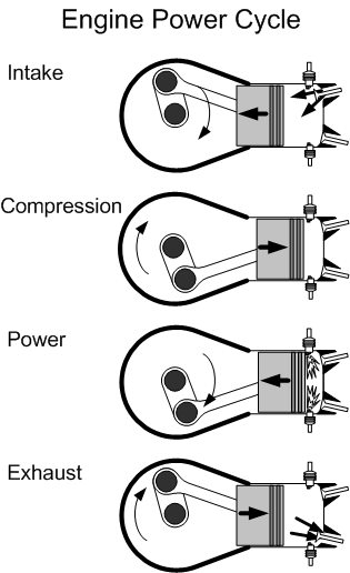 The production of power in an engine is based on the movement of the pistons which can be broken down into the follow strokes: